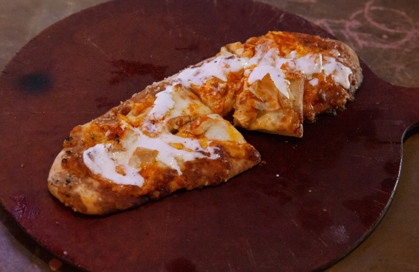 Our blend of cheeses and buffalo chicken baked onto a fresh pretzel flatbread